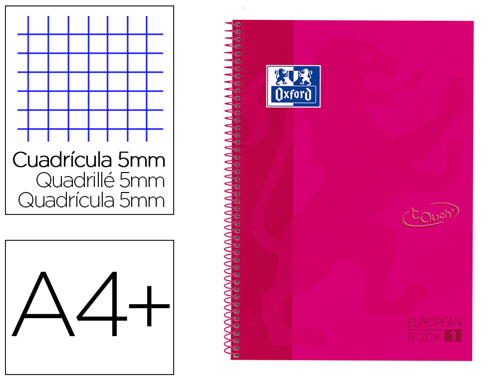 Cuaderno espiral oxford europeanbook 1 live&go tapa plastico din a4+ 80 hojas cuadro 5 mm color negro